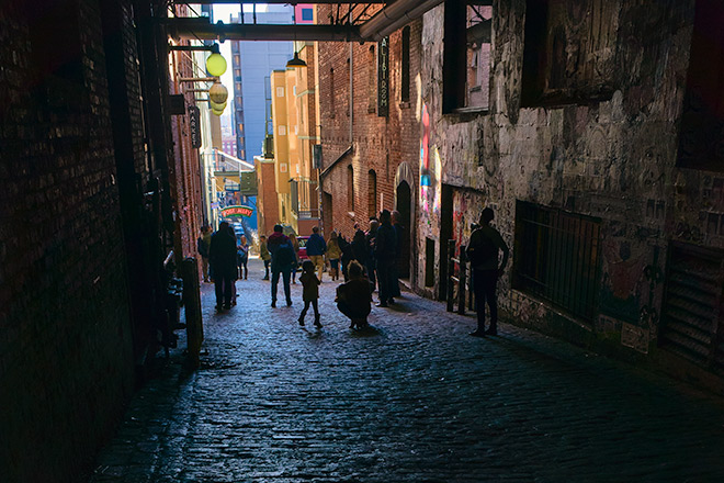 | A colorful back alley off the south side of Pike's Place Market, Seattle, Washington. |