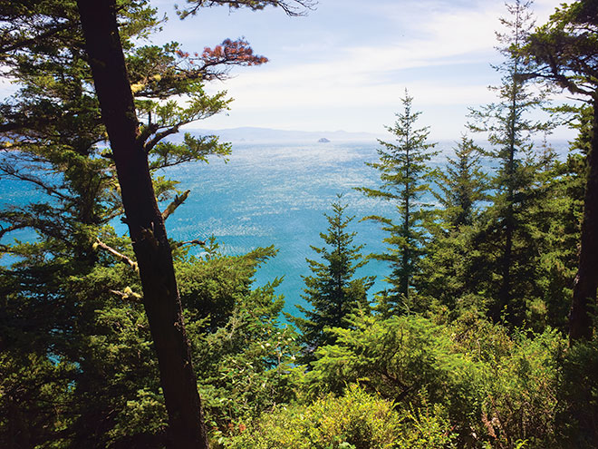 | Oregon's blue Pacific coast, looking south from Port Orford headland in the Port Orford Heads State Park. |
