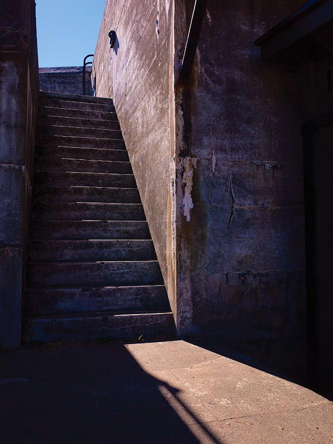 | Looking up the concrete stairs from the bottom of a bunker, Fort Casey, Whidbey Island, Washington |