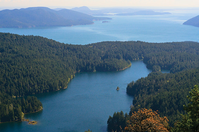 | Mountain Lake, Orcas Island, and the lower San Juan Islands beyond, from the Mt. Constitution Trail on Orcas Island. |